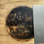 Mina täckskivor har oftast ett hål i mitten som är täckt med en plast som jag kan vika undan. Först gör jag ett runt hål i plasten runt sockerdegen och snabbt lyfter jag upp plasten över hålet och lägger ner sockerdegen över hålet. Bina hinner knappt bli störda och minimalt med värme släpps ut. Sockerdegen hade jag förvarat i några dagar i rumstemperatur. Om jag haft sockerdegen i bilen över natten när det är kallt så hade den fungerat som en kylklamp och kylt ner samhället. Lägger en foderlåda upp och ner som täcker så att det blir lättare för bina att hålla värmen.