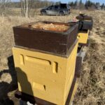 Idag så passar jag på och lägger på en påse sockerdeg på samhällen jag anser väger för lite och riskerar foderbrist längre fram. Jag använder ”finger tricket”, kan jag lyfta upp sidan på en bikupa med ett finger så har samhället för lite foder kvar. Då är det läge att lägga på en påse sockerdeg.
