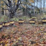 Trots tråkigt höstväder åkte jag ut till mina bigårdar och plockade bort foderlådorna jag lämnat vid senaste besöket. På några ställen kan jag förvara lådor i en lada eller skjul och det är guld värt. På övriga ställen lådor utomhus i anslutning till bigården.