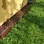 Nu var det dags att ta hem första skattlådorna, lite senare än jag brukar. För två dagar sedan placerade jag en bitömmare under skattlådorna jag ska hämta, idag kunde jag hämta i stort sätt bi fria skattlådor. Snabbare upphämtning när jag slipper borsta av bina och mindre kladd från honungsramarna när jag bara lyfter lådan utan att lyfta ramarna.