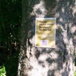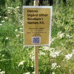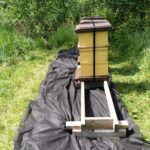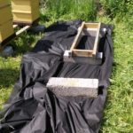 Så här års växer gräset och ogräset runt kuporna explosionsartat. Nu ska jag testa att lägga täckväv under kuporna för att se om det hjälper. Samtidigt börjar jag sätta upp nya skyltar med kontaktinformation vid varje bigård. Jag har skrivit ut på ett special papper som innehåller plast som smälter när tonern fixerar så det blir som laminerat fast bättre.