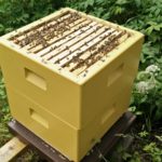 Håller på och förbereder för årets andra slungning. För att slippa borsta av bina när man skattar så brukar jag ofta ställa fram en botten och lägga en bitömmare och sedan ställer jag skattlådorna som dom är på. Efter en vecka så brukar i stort sätt alla bina ha tagit sig ut, bara det inte fanns en massa drönare för då går det sämre. Eftersom man inte lyfter upp varje ram och borstar så blir det mindre kladd då man inte river upp locken på cellerna.