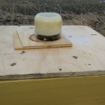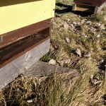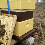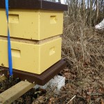 Idag har jag stödfodrat mina bin. Eftersom jag hade några hinkar med Bifor kvar sedan i höstas så tog jag fram dom och hällde halva hinken i en tom hink och sedan spädde jag ut med vatten. Dom som inte fick bifor gav jag en honungsburk istället. När jag kom fram till dom två samhällen som jag invintrat ovanpå varandra blev jag orolig när jag fick se hur mycket bibajs som fanns på utsidan och ingen aktivitet från bin på utsidan. Men när jag öppnade så ser båda samhällena friska ut, men jag bytte ut snelgrove brädan för säkerhets skull. Bibajset var från rensningsflygningen bina nyligen gjort.