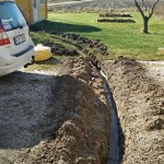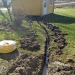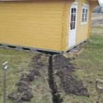 Under veckan har jag handgrävt och lagt ner ett skyddsrör för el ledning till min friggebod som jag har som slungrum. Bäst att passa på medan marken är vattensjuk för då är det lättare att gräva. Nu är det bara att fästa el kabeln i draglinan för att få el indragen till friggeboden. Jag har väntat länge på att få ström indragen, men snart så är det klart.